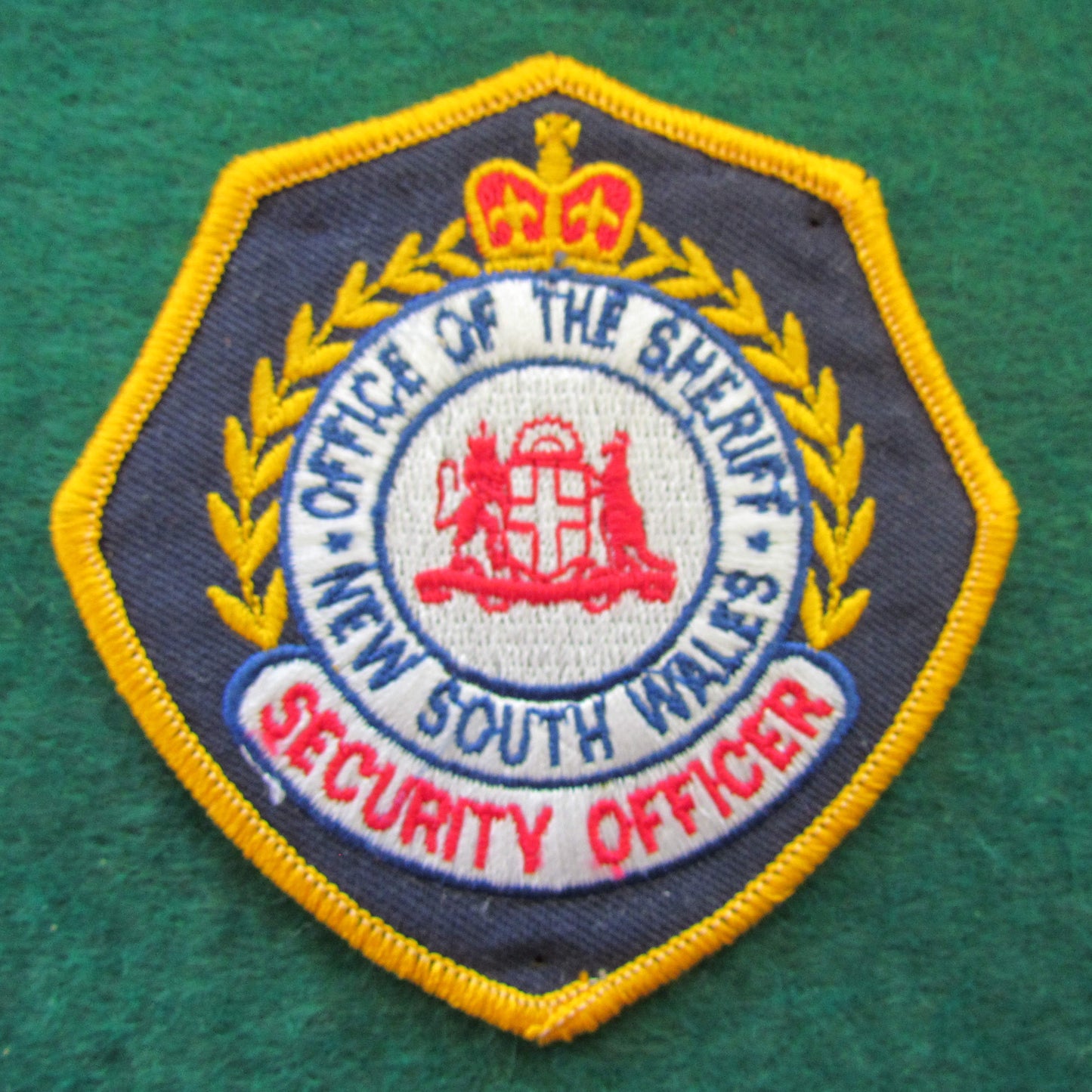 New South Wales Office Of The Sheriff Shoulder Patch - Security Officer. A vintage unused patch in good excellent condition with pin holes where it was mounted for display. Please view images as all images are of the actual item.