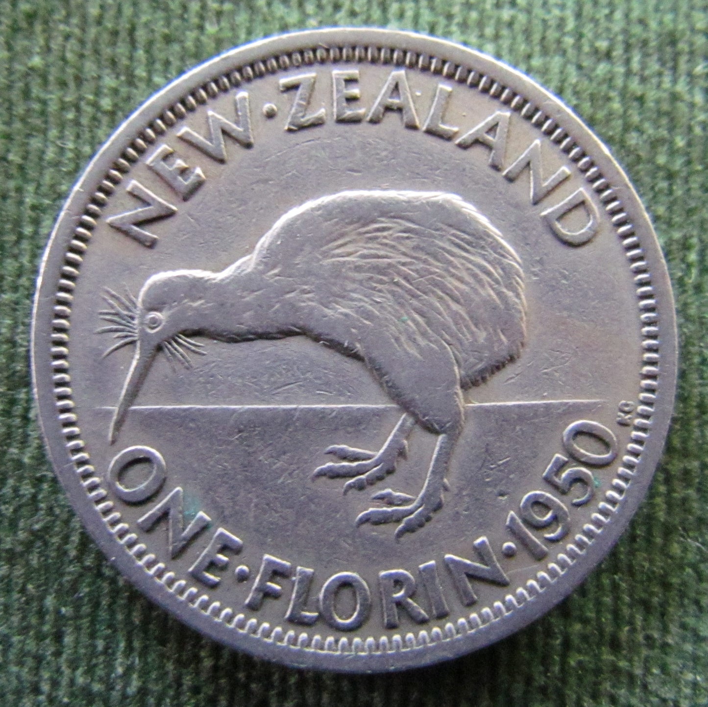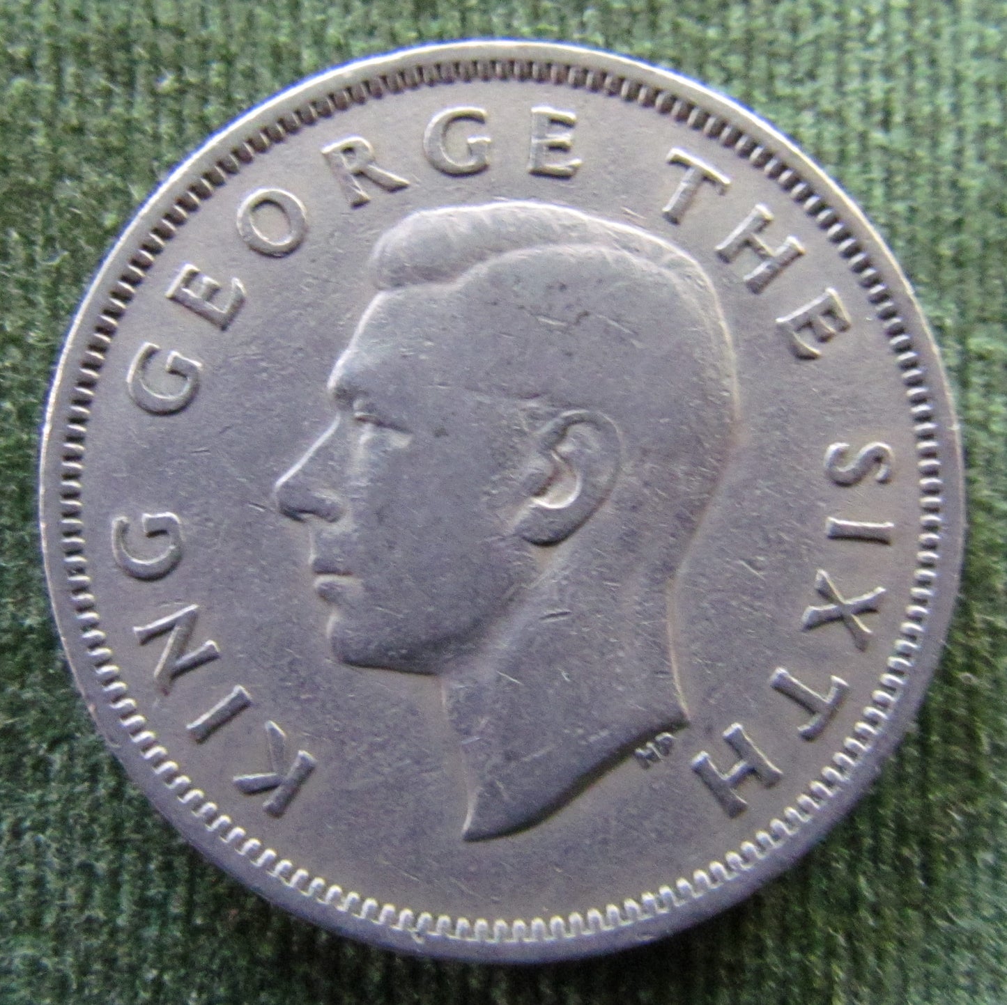 New Zealand 1950 Florin King George VI Coin. All images shown are actual coin.