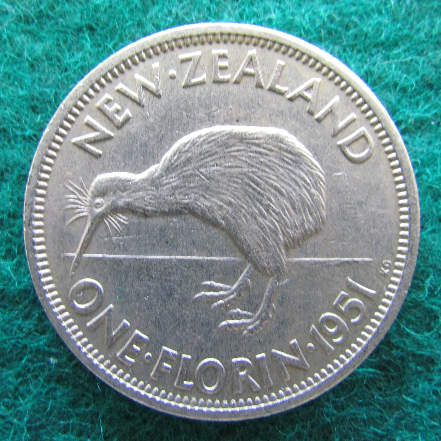 New Zealand 1951 Florin King George VI Coin. All images shown are actual coin.