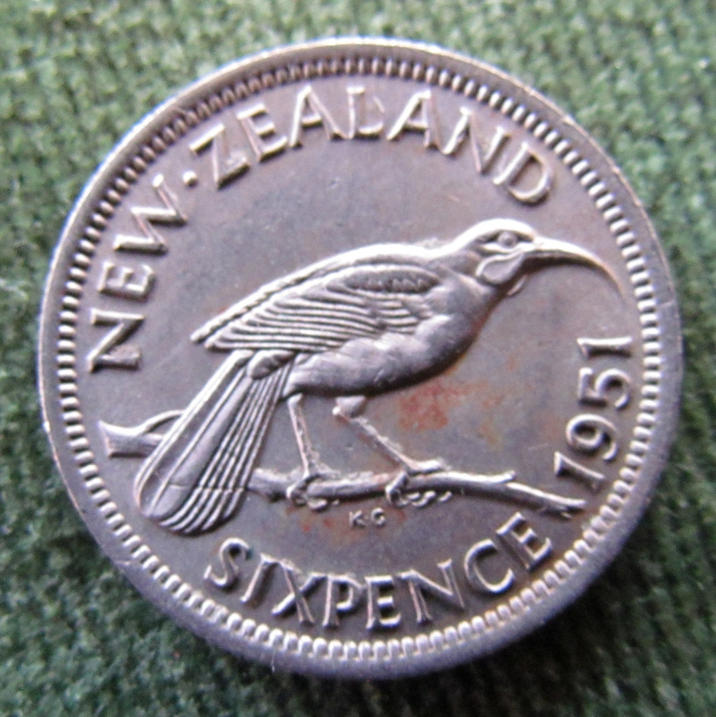 New Zealand 1951 Sixpence King George VI Coin. A good example showing wear and tear consistent with its period in circulation, please view images. All images shown are of the actual item.