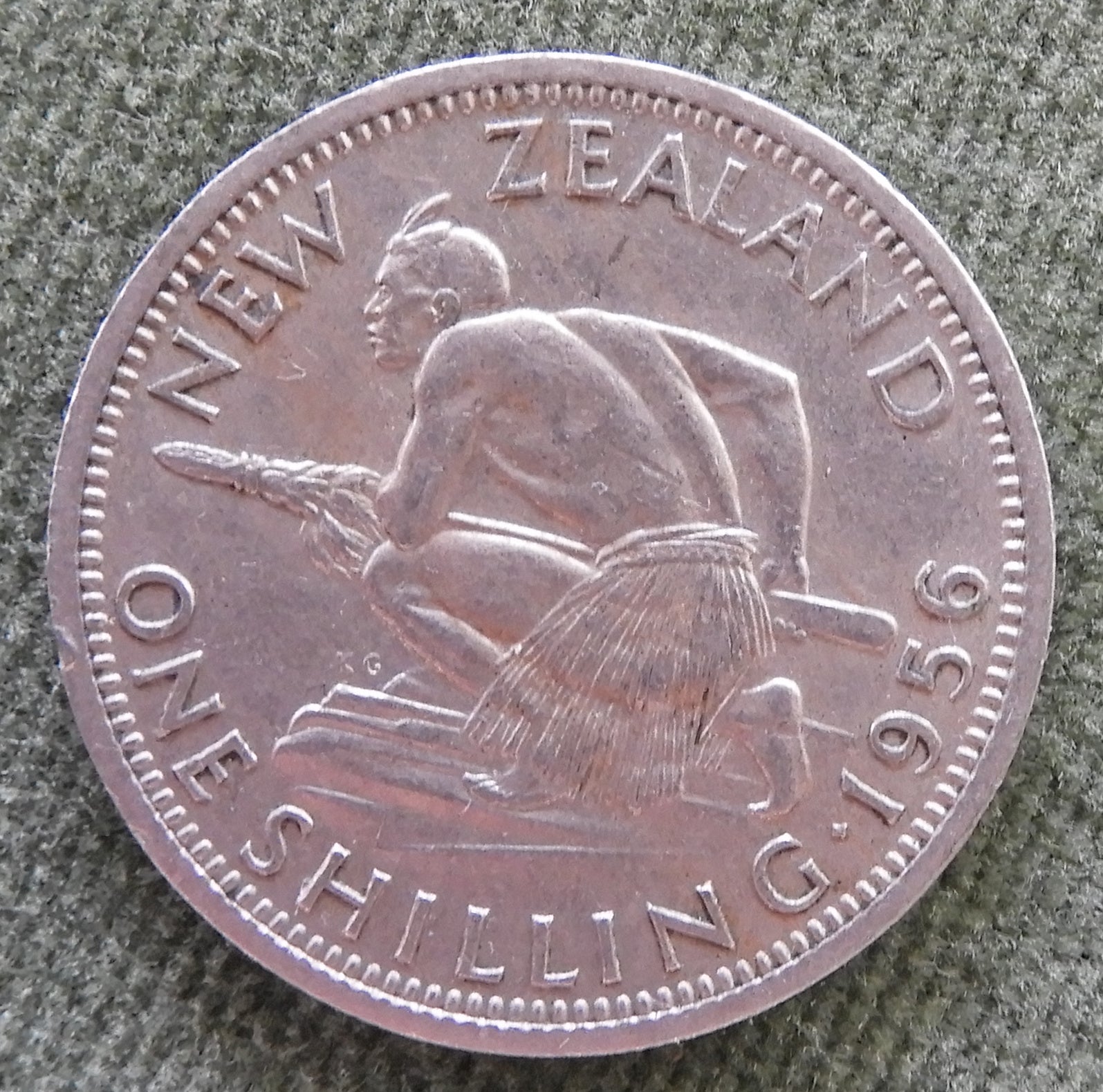 New Zealand 1956 Shilling Queen Elizabeth II Coin. A good coin with good detail consistent with intermediate term circulation. Please view images as all images shown are the actual item.