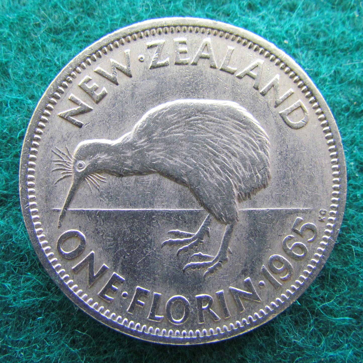 New Zealand 1965 Florin Queen Elizabeth II Coin All images shown are actual coin