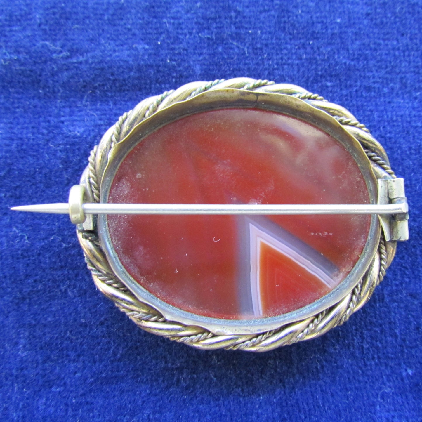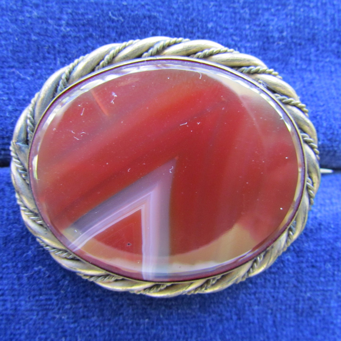 Pinchbeck Oval Rope Twist Mounted Banded Agate Brooch. Please view images as all images are of the actual item.