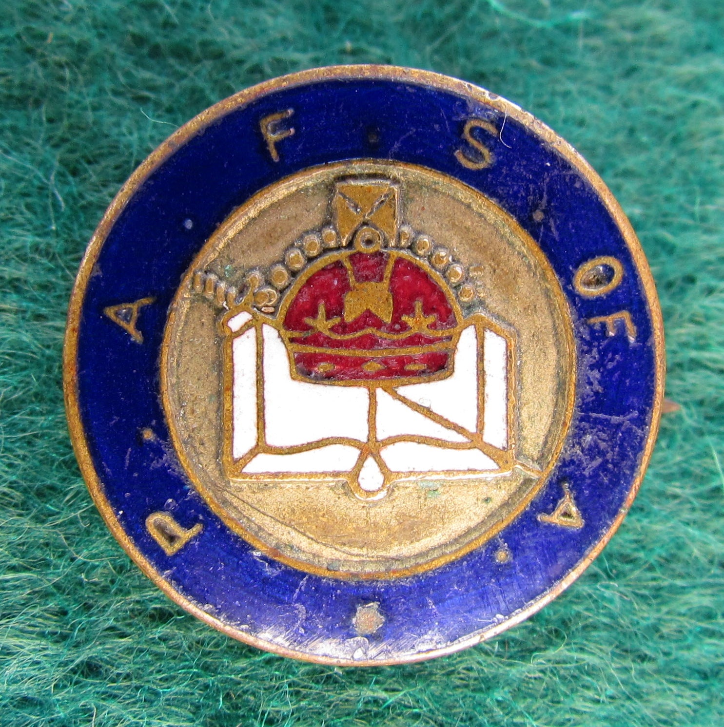 Protestant Alliance Friendly Society of Australasia Lapel Badge. A good example of this badge with dark blue enamel background showing some wear and tear with natural oxidisation. Please view images as all images are of the actual item.