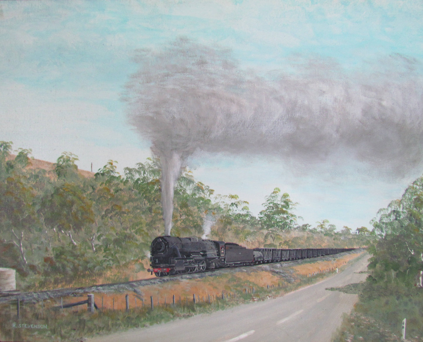 R Stevenson South African Artist Oil On Board Of A Coal Train In The Veld