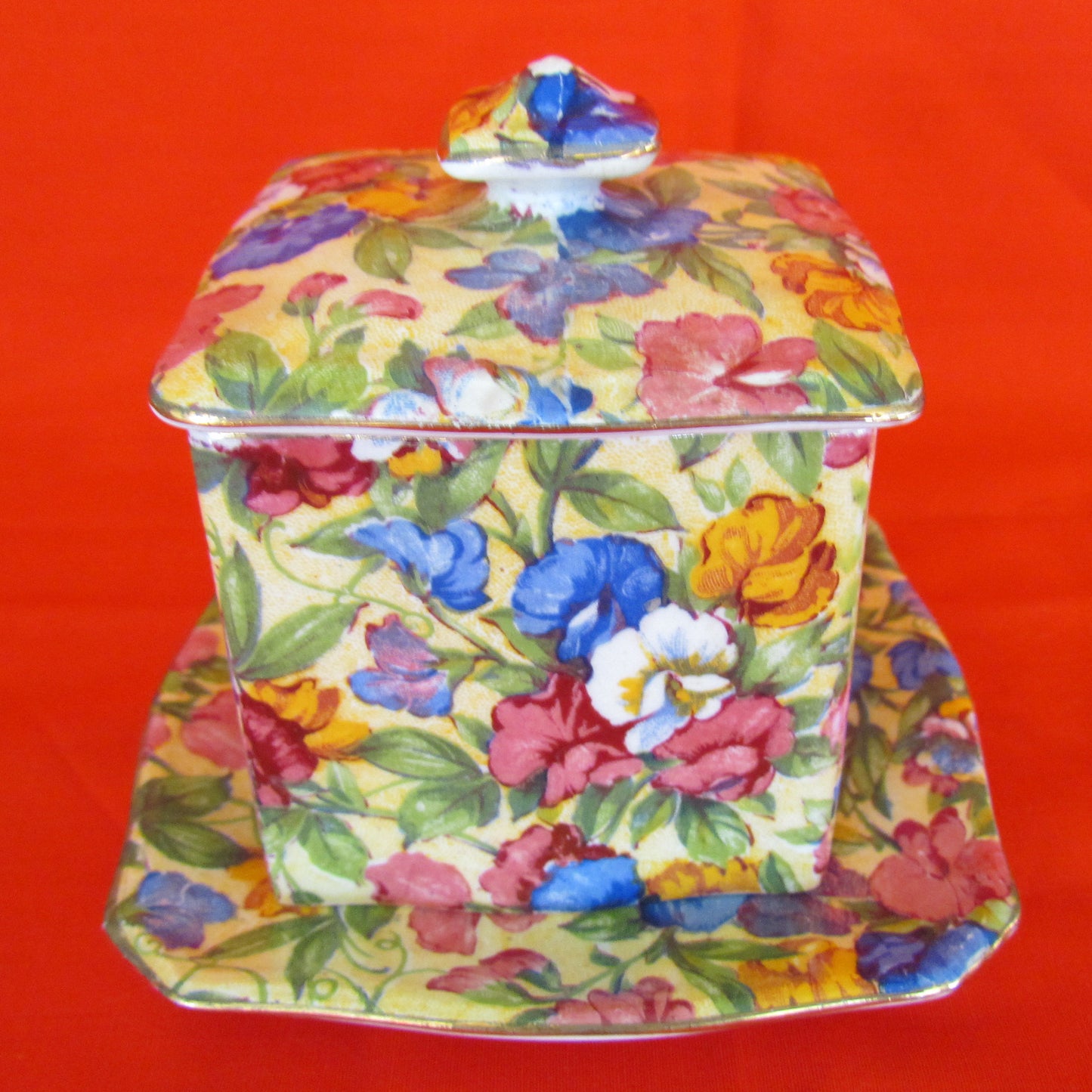 Royal Winton Sweat Pea Lidded Conserve With Stand Plate