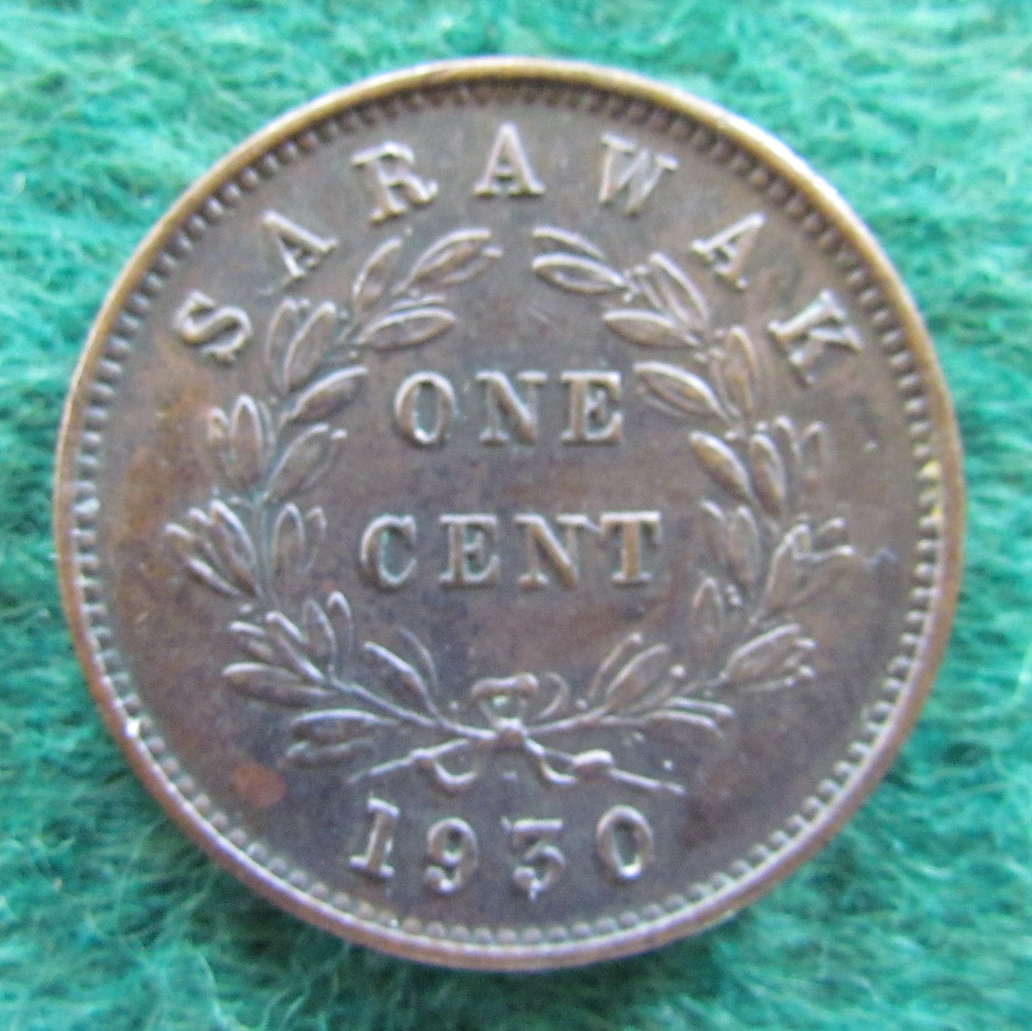 Sarawak 1930 H 1 Cent Coin C V Brooke Rajah. A good coin showing wear consistent with short term circulation and light handling. Please view images as all Images are of the actual item.
