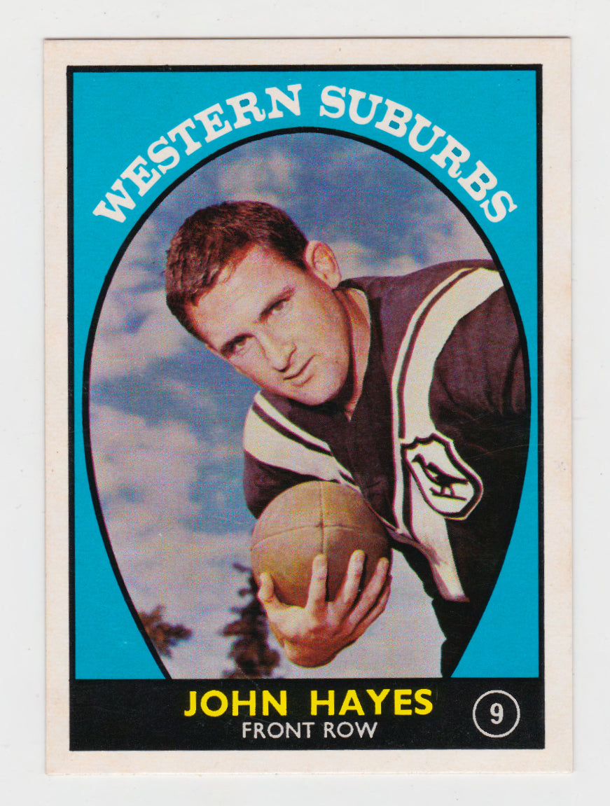 Scanlens 1968 A Grade NRL Football Card #09 - John Hayes - Western Suburbs