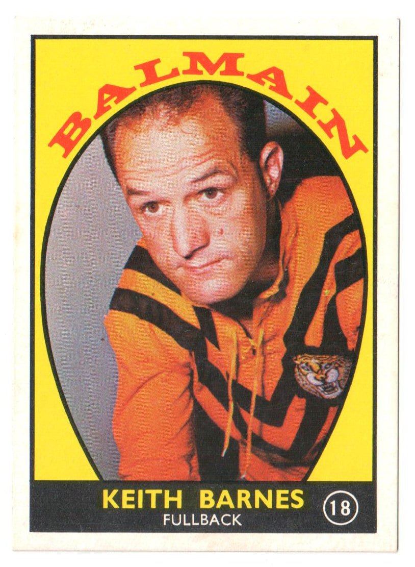 Scanlens 1968 A Grade NRL Football Card #18 - Keith Barnes - Balmain
