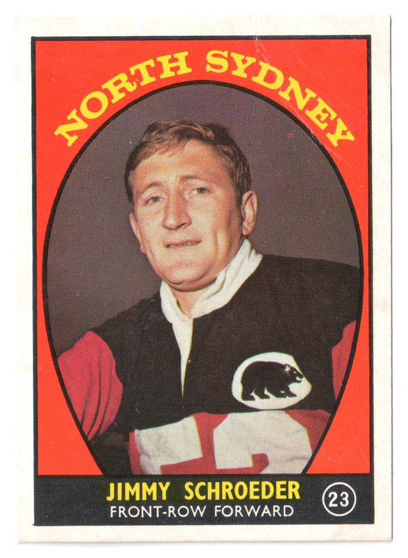 Scanlens 1968 A Grade NRL Football Card #23 - Jimmy Schroeder - North Sydney