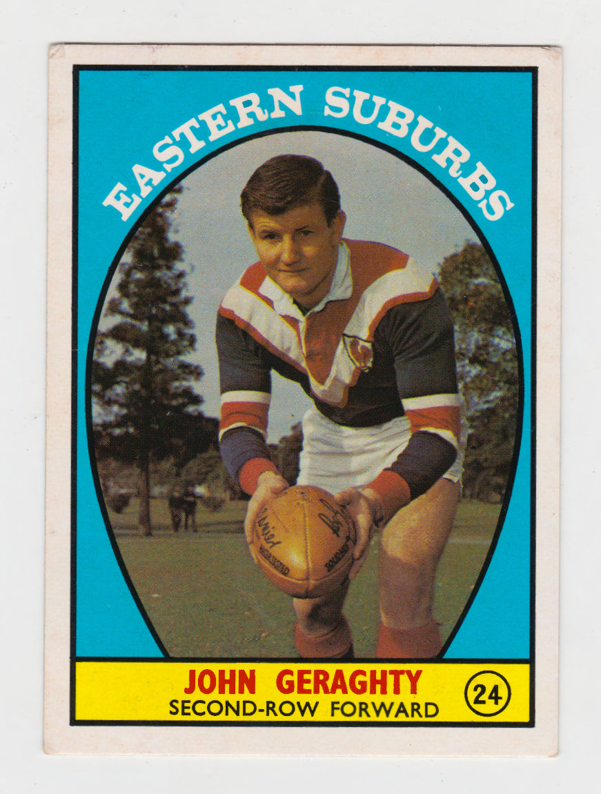 Scanlens 1968 A Grade NRL Football Card #24 - John Geraghty - Earstern Suburbs