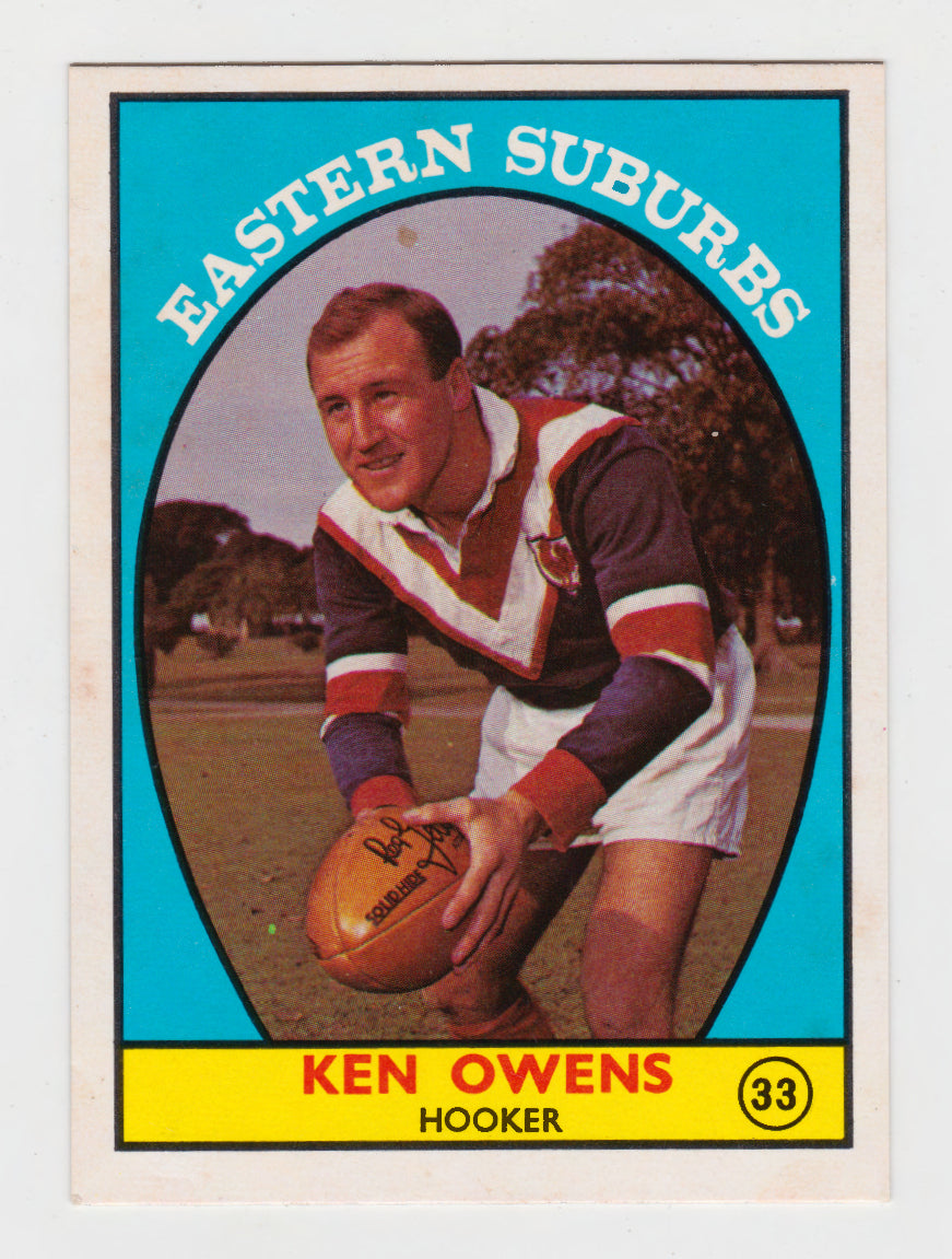 Scanlens 1968 A Grade NRL Football Card #33 - Ken Owens - Earstern Suburbs
