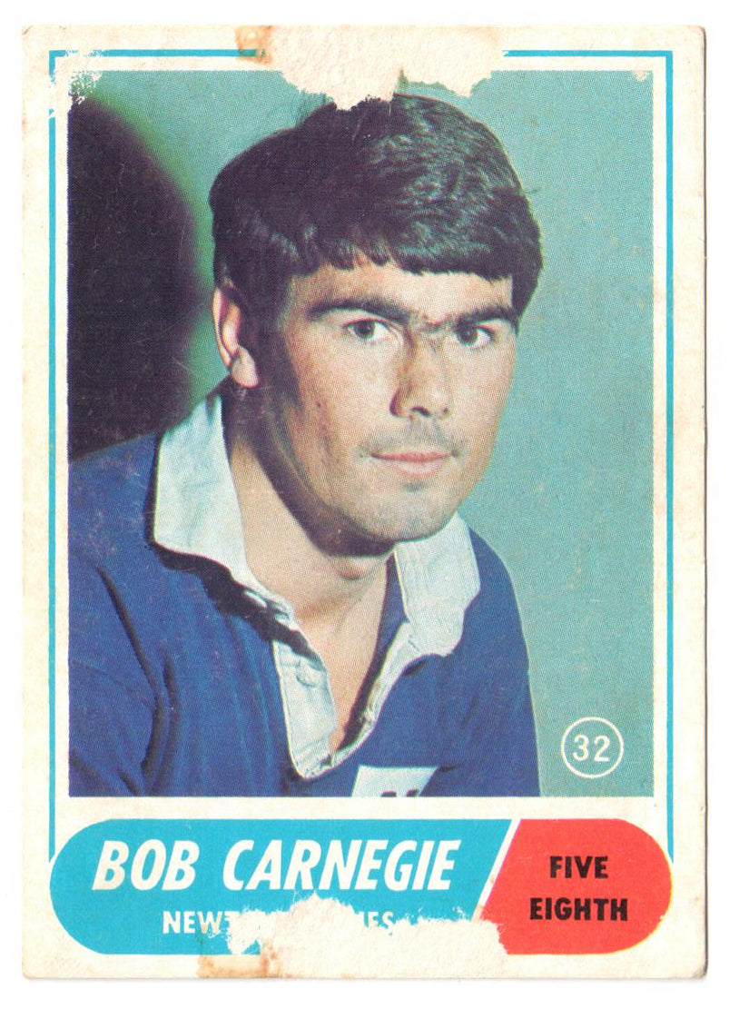 Scanlens 1969 A Grade NRL Football Card #32 - Bob Carnegie - Newtown Blues