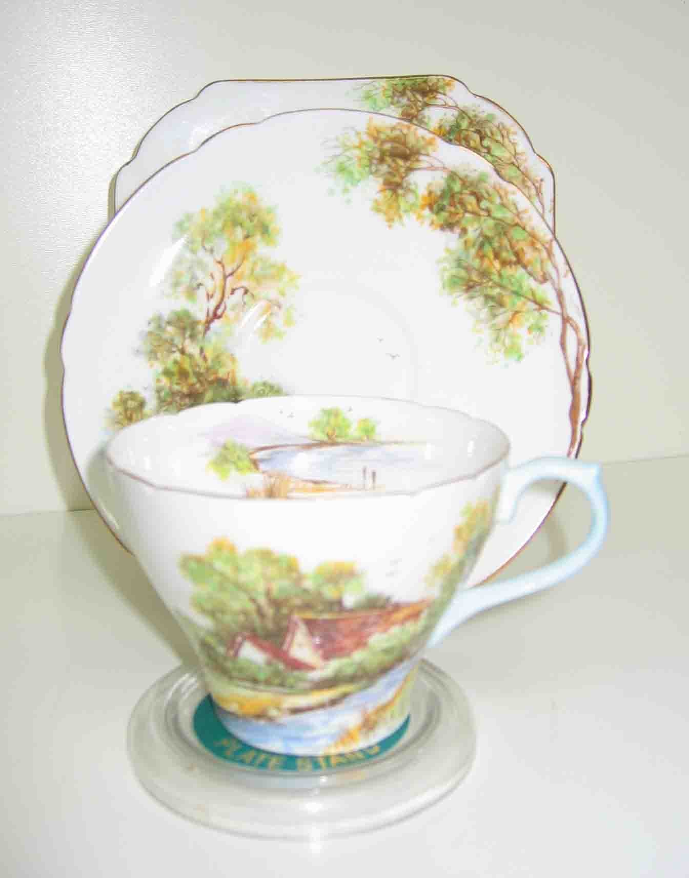 Shelley 'Old Mill' cup, saucer and plate. Please view images as all images are of the actual item.