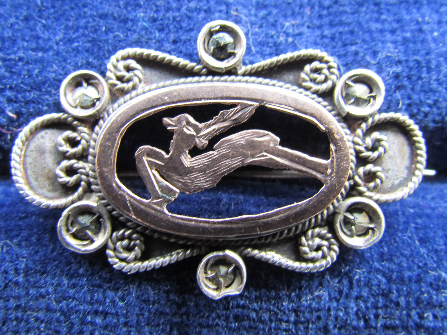 Silver Marcasite Brooch With Gold Inset Depicting A Springbok In Stride