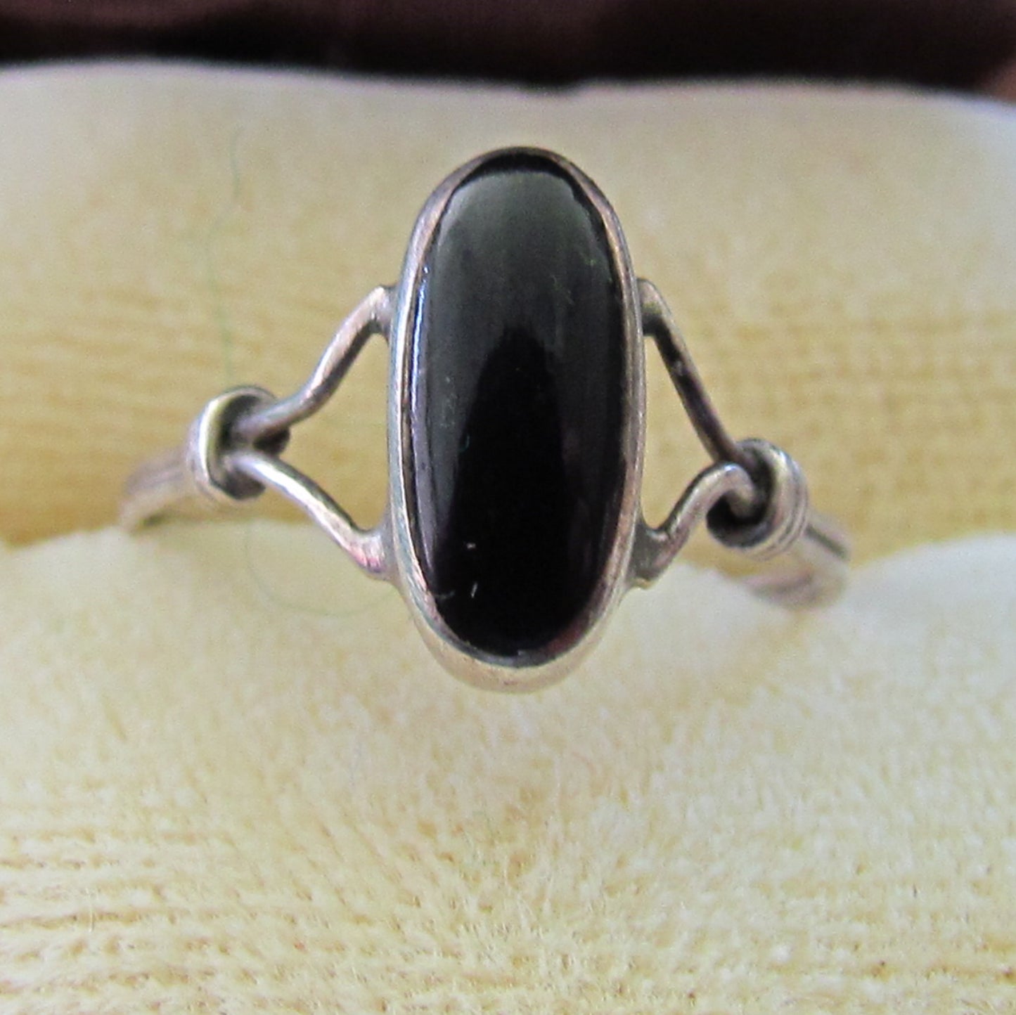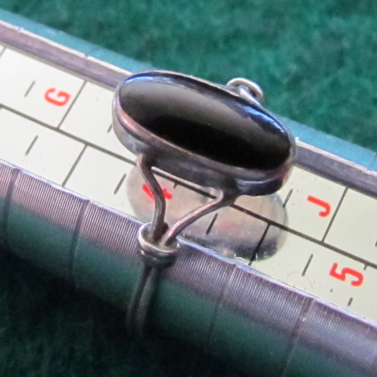 Silver Filigree Dress Ring Set With Oval Bezel Set Black Stone. A dainty fine wire setting with a elongated closed bezel set stone.