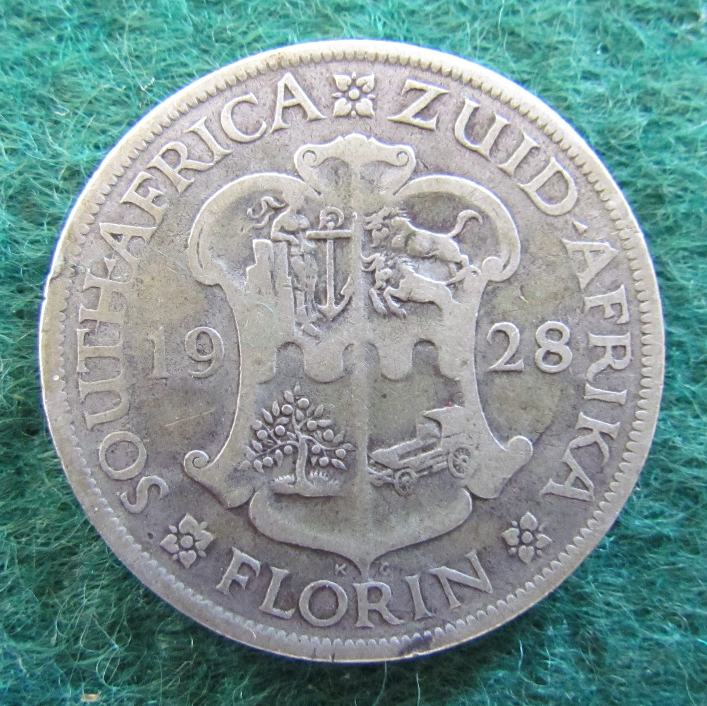 South Africa 1928 2 Shilling Coin King George V. A fair to good coin showing wear consistent with heavy handling in long term circulation, please view images. All images are of the actual coin.