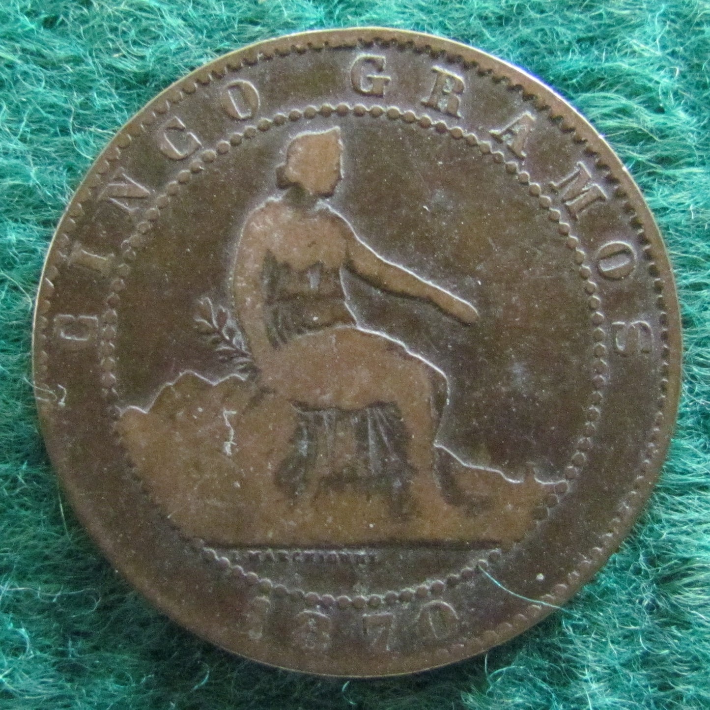 Spanish 1870 5 Centimos Coin Provisional Government - Circulated
