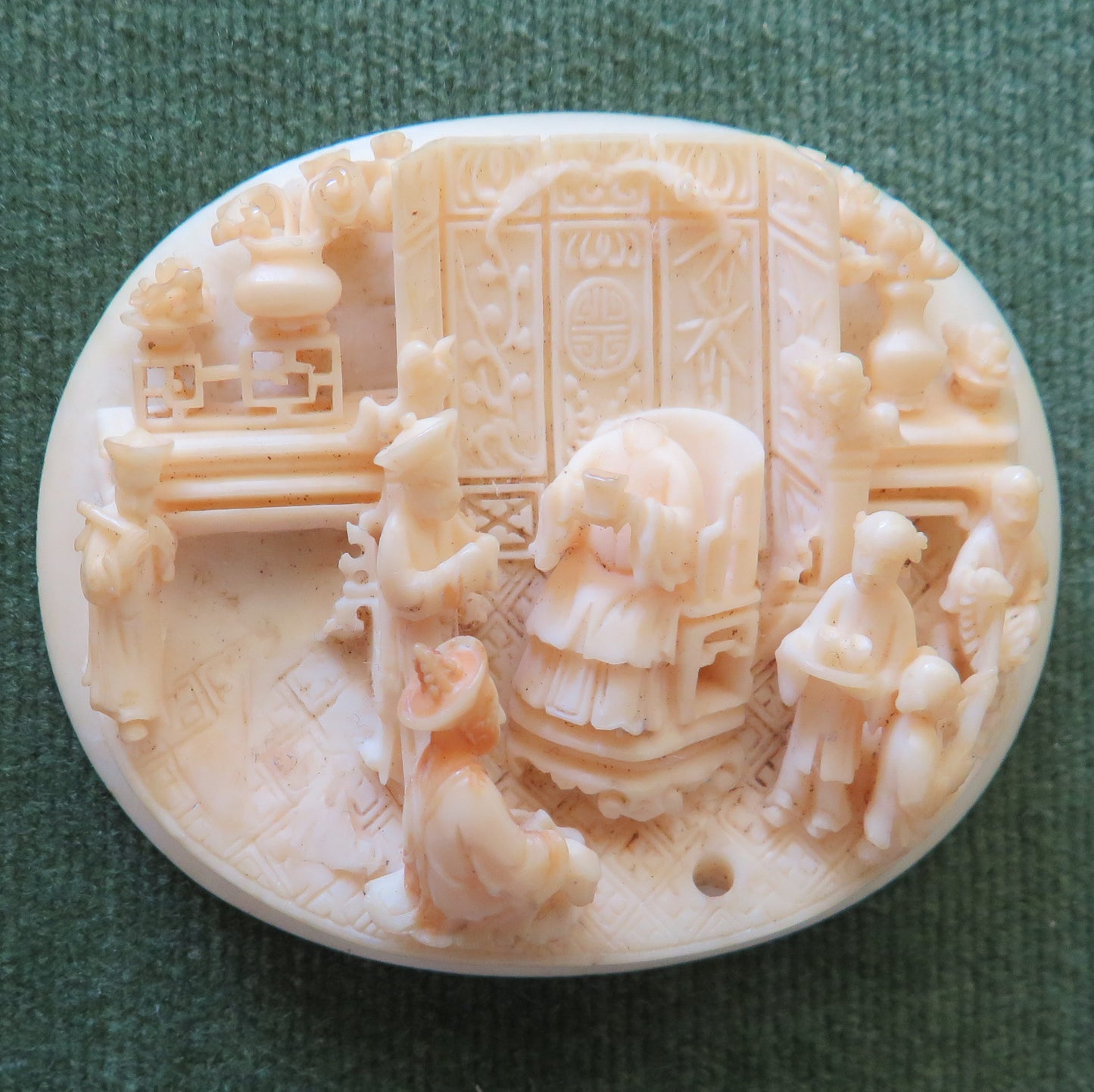 Tagua Nut Chinese Carved Image Of A Royal Court In Progress - With Damage. Please view images as all images are of the actual item.