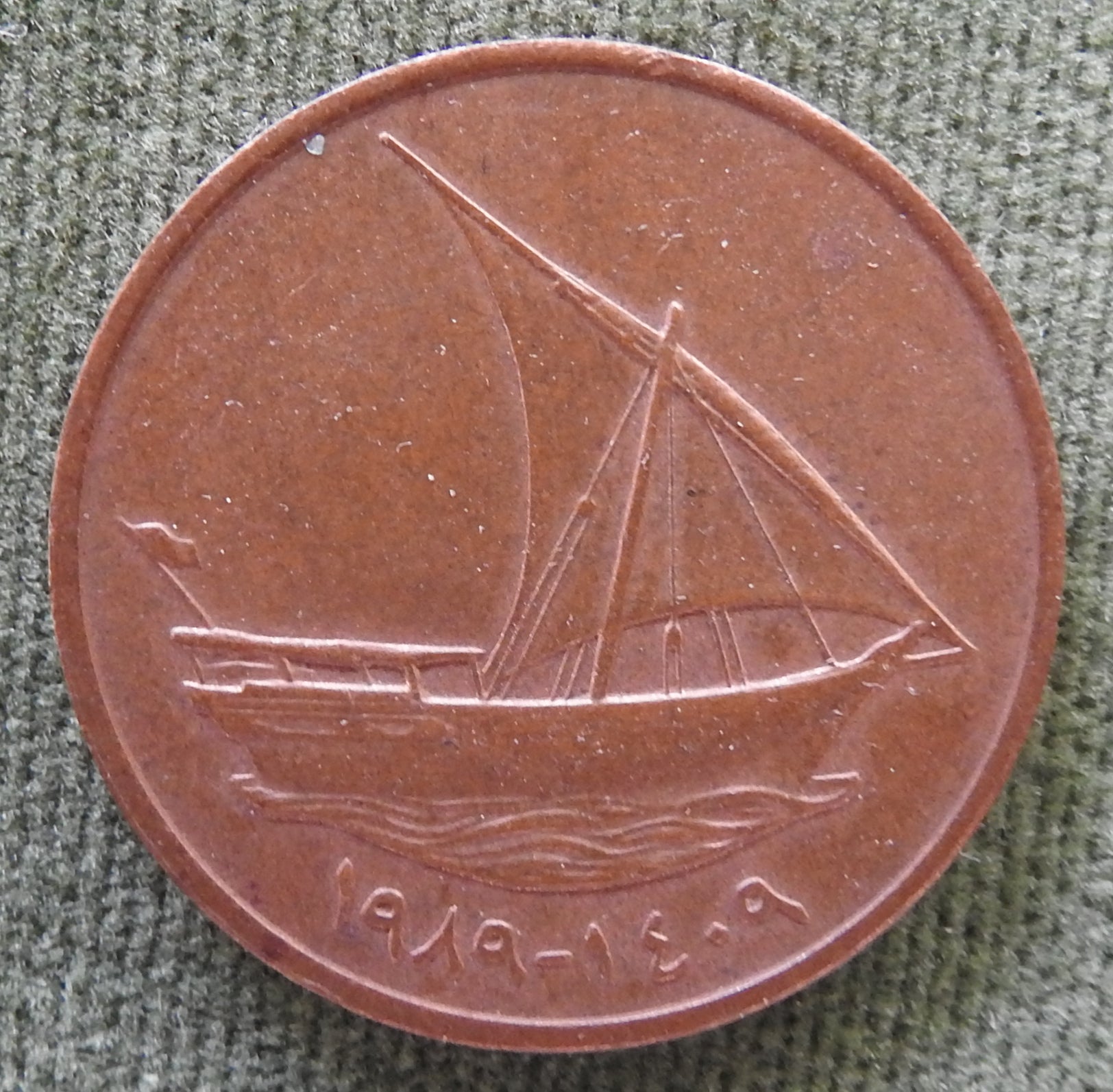 United Arab Emirates 1989 10 Fils Dhow Coin 1409/1989/١٤٠٩ - ١٩٨٩. A good coin with good detail consistent with short to intermediate term circulation. Please view images as all images shown are of the actual item.