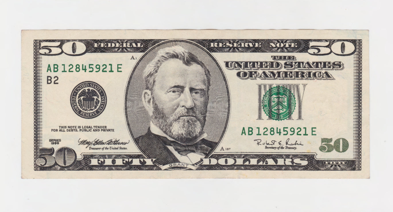 USA 50 Fifty Dollar Banknote Series 1996 Large Face Grant