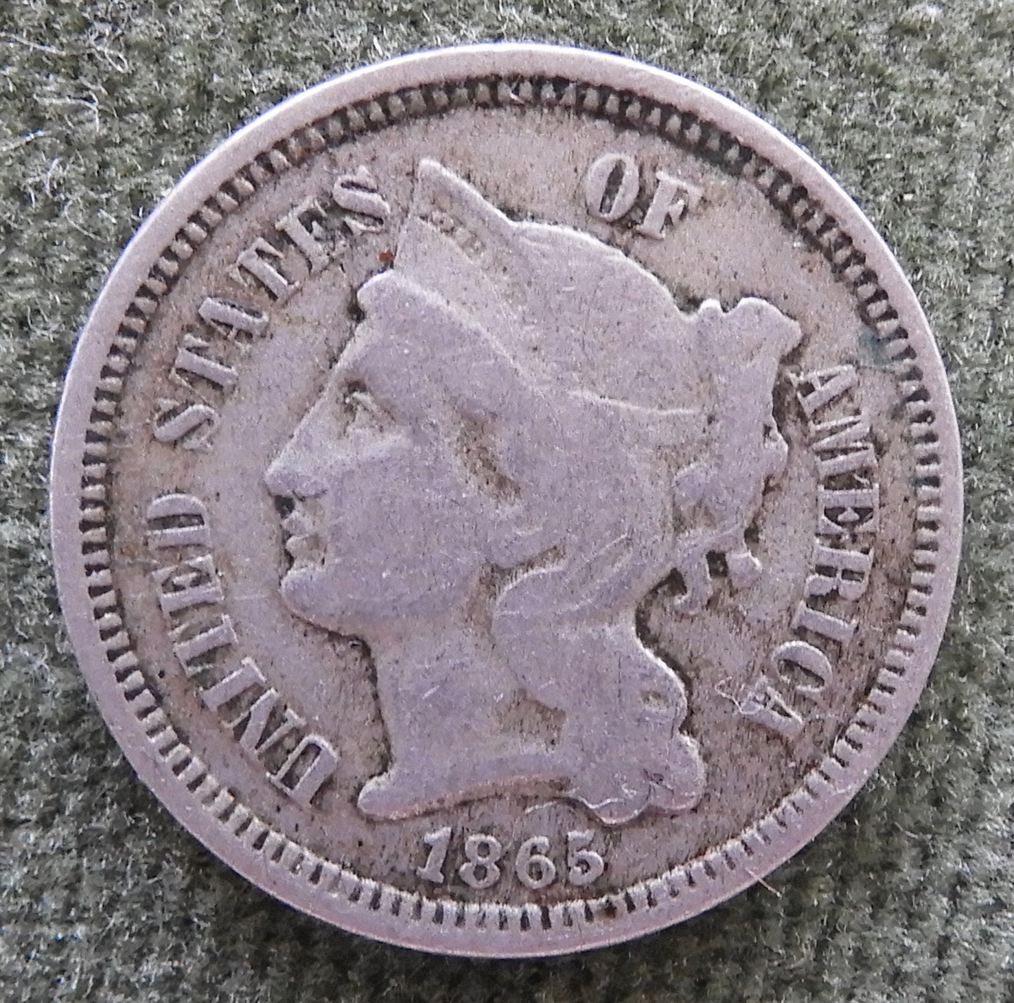 USA American 1865 3 Cent Silver Liberty Head Coin