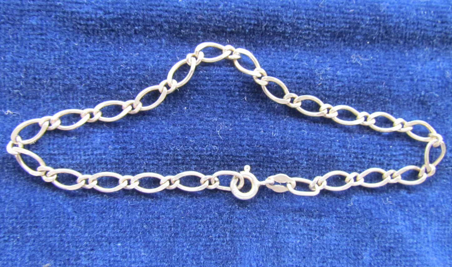 Vintage Silver Curb Link Bracelet Anklet With Long & Short Links 2.7 grams